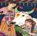 Lord Krishna and his Yadav followers are known to care for cows. The five products Pancha Gavya (पंचगव्य) of the cow- milk, curds, ghee butter, urine, and dung — are all used in Pooja (worship) as well as in rites of extreme penance. The milk of the family cow nourishes children as they grow up, and cow dung (गोबर) is a major source of energy for households throughout and sometimes among the materials used for a tilak (तिलक) – a ritual mark on the forehead. Most Indians do not share the western revulsion at cow excrement, but instead, consider it an earthy and useful natural product. Swami Ramdev, the Yoga Guru, has made fortune selling cow urine (गोमूत्र) through his Patanjali outfit.