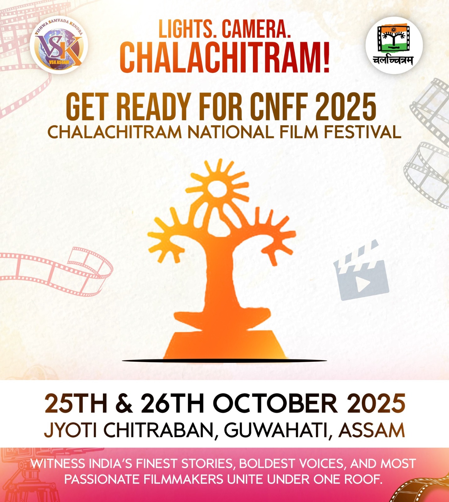 Cinema not for glossy entertainment and making money, but for fostering nationalism, this is how Chalachitram National Film Festival takes shape in Assam. A unique visual feast is coming again for the film buffs on 25 and 26 October 2025 at Jyoti Chitraban premises in Guwahati. The 9th edition of CNFF is scheduled to screen nearly 40 documentary and short feature films (produced between 1 November 2024 and 15 September 2025 with the duration of maximum 25 minutes) in both competition and only screening category for the serious film-makers, cine workers, appreciators and general audience of northeast India. Organized by Chalachitram (www.chalachitram.in), a film society under the mentorship of Bharatiya Chitra Sadhna and Vishwa Samvad Kendra-Assam, the festival also paves the way for paying homage to thousands of years of Indian civilization, culture and heritage.