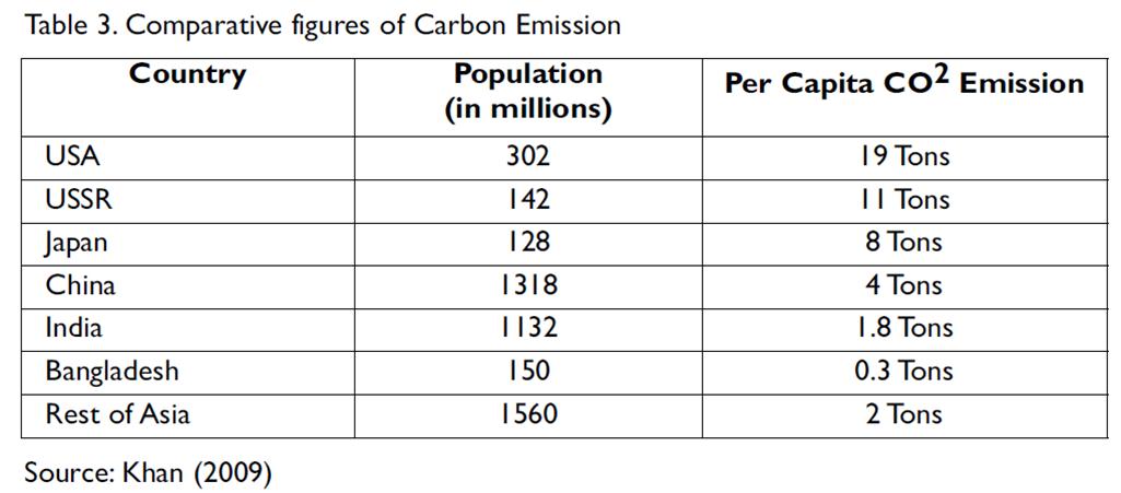 Table 3 in the previous page presents the situation of per capita emission of CO2 of selected South Asian countries vis-à-vis the rest of the world.