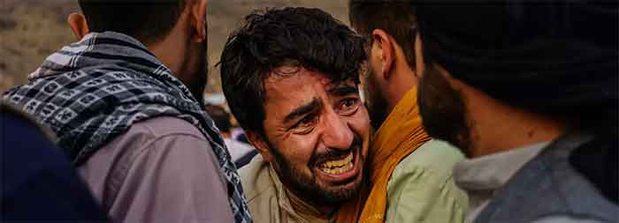 A man grieves during a mass funeral for members of a family was killed in a U.S. drone airstrike, in Kabul, Afghanistan, Monday, Aug. 30, 2021. (Photo: Marcus Yam/Los Angeles Times)