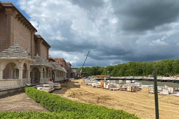 The BAPS temple opened in Robbinsville, N.J., in 2014 and is still under construction. Credit…Annie Correal/The New York Times