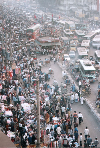 Photo Caption:  People crowd the streets of Dhaka city, Bangladesh, with little room for ‘active travel’. Photo Credit: Ahron de Leeuw | www.flickr.com/photos/ahron/