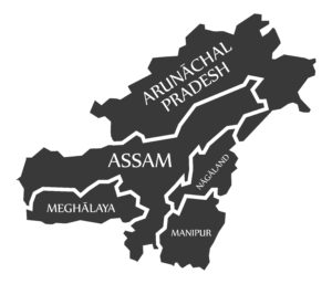 Arunachal Pradesh – Assam – Nagaland – Meghalaya – Manipur Map Illustration of Indian states – Ingo Mehnard. Shutterstock