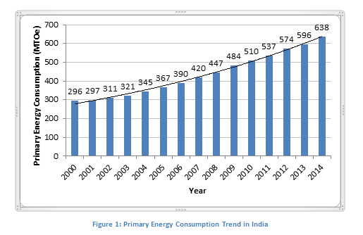 India’s energy needs are constantly increasing (fig.1) and in 2014 with 7.2 percent growth it was one of highest growing economies in the world. In 2017, with projected economic growth of 7.5 percent, India is expected to be ahead of China (6.5 percent)[iii]. The Economist Intelligence Unit projects India to be the 3rd largest economy with GDP of $63.84 trillion by 2050[iv]. This means, India will require more energy to sustains its economic growth and attain prosperity. Still millions of Indians suffer from energy poverty and many industries face challenges of meeting their energy needs from reliable sources at affordable price. However, the energy story is being rewritten with a significant focus on increasing affordable clean energy supply and eradicating energy poverty in the country-possibly such a dream would come true within a decade. This may sound too ambitious but not beyond reach of India.