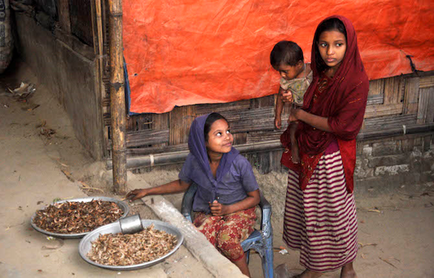 A Rohingya child sells dry fish at the same refugee camp in this 2014 file photo. Most of the kids at the Rohingya camps do not receive any formal schooling due to a lack of facilities and opportunities. The recent ban on them attending regular schools exacerbated matters. (Photo by Stephan Uttom/ucanews.com)