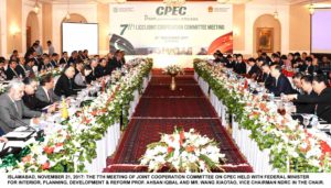 The most recent 7th JCC meeting on CPEC was held on Nov 20, 2017, in Islamabad. The key points of this meeting included the signing of much-debated CPEC Long Term Plan (LTP) 2014-2030 which includes collaboration in areas of industrial cooperation, agriculture, tourism and financial cooperation. It has attempted to formalize the future roadmap for industrial and economic collaboration involving special economic zones along the CPEC stretch in Pakistan and adopt a Long Term Plan (LTP) 2030. It has been inferred that the main focus of the seventh JCC meeting remained on the special economic/industrial zones while the five joint working groups (JWGs) met earlier on the Nov 20, 2017 to remove any irritant and suggested the five ways on the projects pertaining to — Gwadar, energy, transport infrastructure, special economic zones. Pakistan’s primary objective is to enhance its industrial capacity by assembling imported parts to local production of goods and encouraging China’s enterprises to invest in Pakistani market to improve the energy efficient appliance industry.