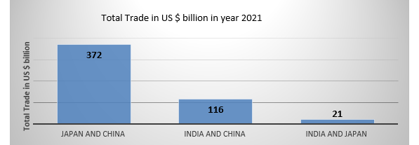 For instance, the India- Japan bilateral trade in the year 2021 stood at US $ 20.6 billon, which is less that one fourth when compared with bilateral trade between India and China at US $ 116 billion and is miniscule compared to the bilateral trade between China and Japan at whooping US $ 372 billion. Thus, trade between two countries is certainly below its potential and there is a huge scope for improvement.