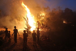 A bunch of Khasi children fire-fighters watch on, as the flames erupt in a slash and burn episode. Mirza Zulfiqur Rahman, Author provided